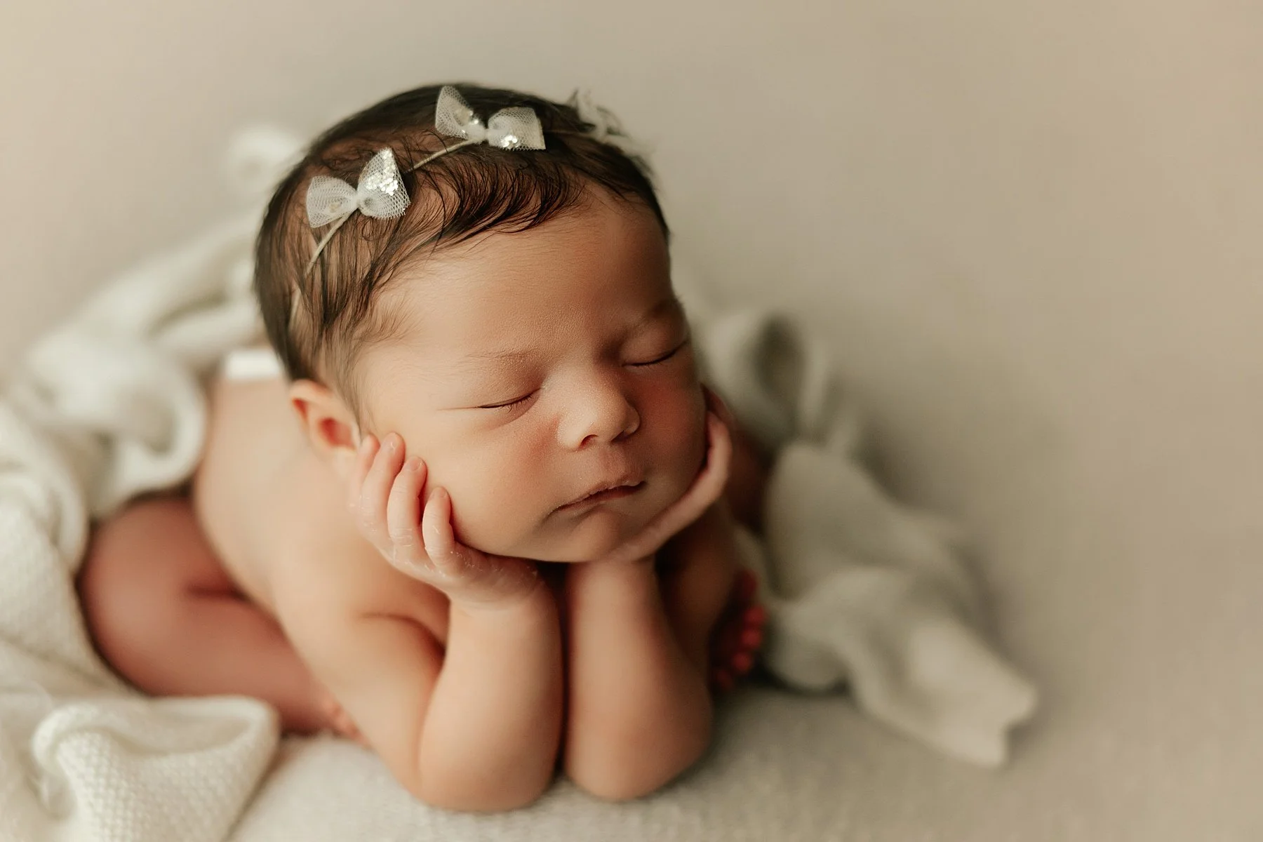 To book a session, a $250 fee is required to hold a spot for you in my calendar. This fee covers up to 3 hours of continuous coverage, a make up day in case your baby doesn’t sleep for their session, a pre-session consultation, access to my entire studio (Thats right! I provide everything for your session! Such as props, backdrop blankets, a few simple outfits, swaddles, headbands and more!), a prep guide to make the session go as smoothly as possible, and you also get a reveal session back at the studio where you will see your edited images for the first time in an adorable slideshow! This fee does not include any images or products as they are sold separately. To view my Collections, just keep reading!